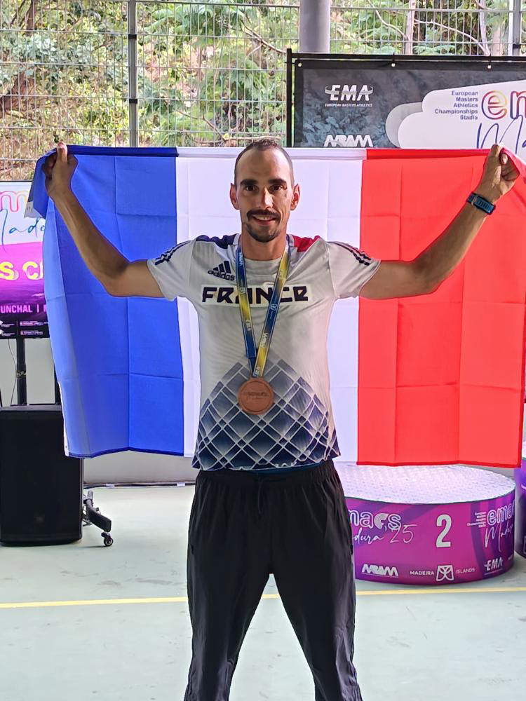 Une belle médaille de bronze aux Championnats d’Europe Master pour Eddy Gouron au Décathlon avec un total de 6119 points ! 🥉 et notamment un nouveau record au lancer de javelot avec un jet à 50m79 ! 🥳